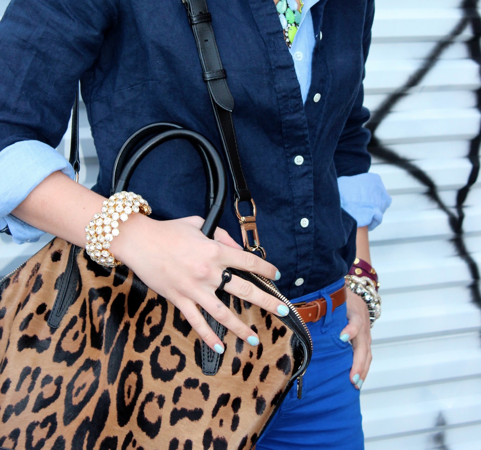Pants: J Brand, Shirts: J. Crew (similar), Belt: J. Crew, Bag: Alexander Wang, Sunnies: Tom Ford, Jewels: J. Crew, J. Crew, J. Crew, Tory Burch, Necklace: Haskell (similar), Shoes: giuseppe zanotti (old)